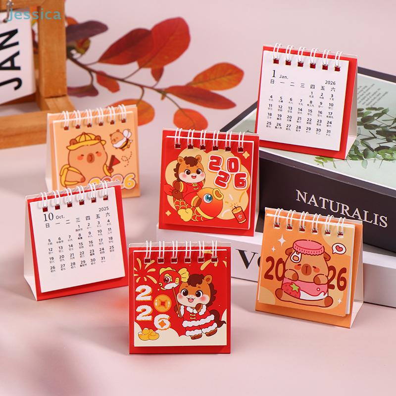 2026 Cartoon Pony And Capybara Mini Desktop Calendar Portable Coil Calendar Books Desk Decor