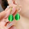 New Green Opal Drop Shaped Earbuckles for Women Retro Personality Fashion Daily Earrings Accessories Party Jewelry Birthday Gift