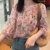 Ladies Summer Bohe Shirt - Oversized Short Sleeve Button Down Flower Printed Top for Casual Layering