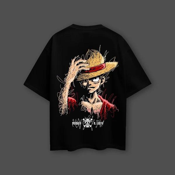 One Piece Anime Strohhut Luffy Übergroßes Baumwoll-T-Shirt für Damen und Herren Atmungsaktiv Hohe Qualität Y2K Kurzarm Sommer-T-Shirt