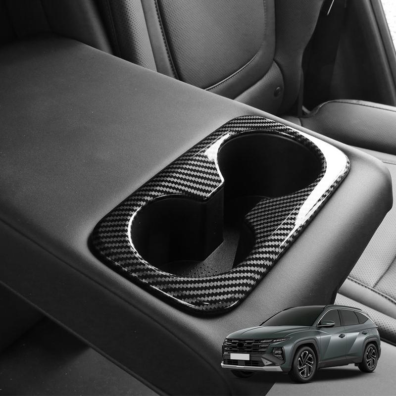 Carbon Fiber Style ABS Rear Row Passenger Seat Water Cup Holder Frame Cover Trim For Hyundai Tucson NX4 -2026 Accessories