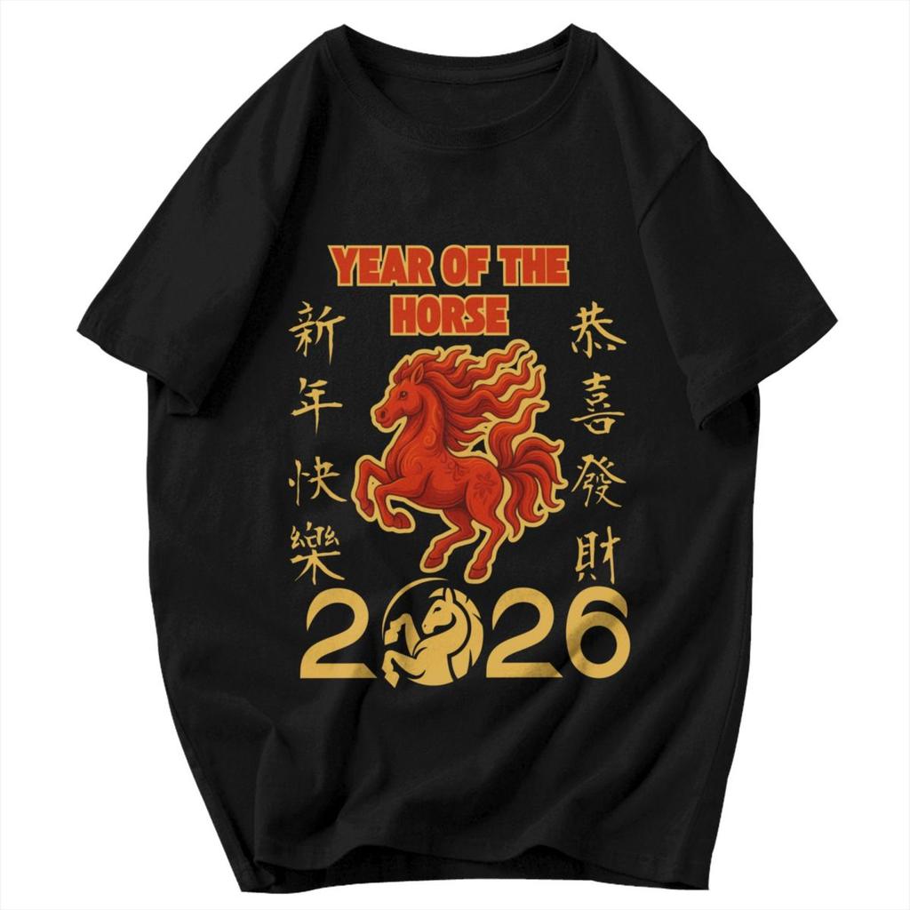 Herren T-Shirt 2026 Feuerpferd Chinesisches Neujahr Pferd Trendige Geschenke Y2K Grafik Rundhals Unisex Kleidung T-Shirts