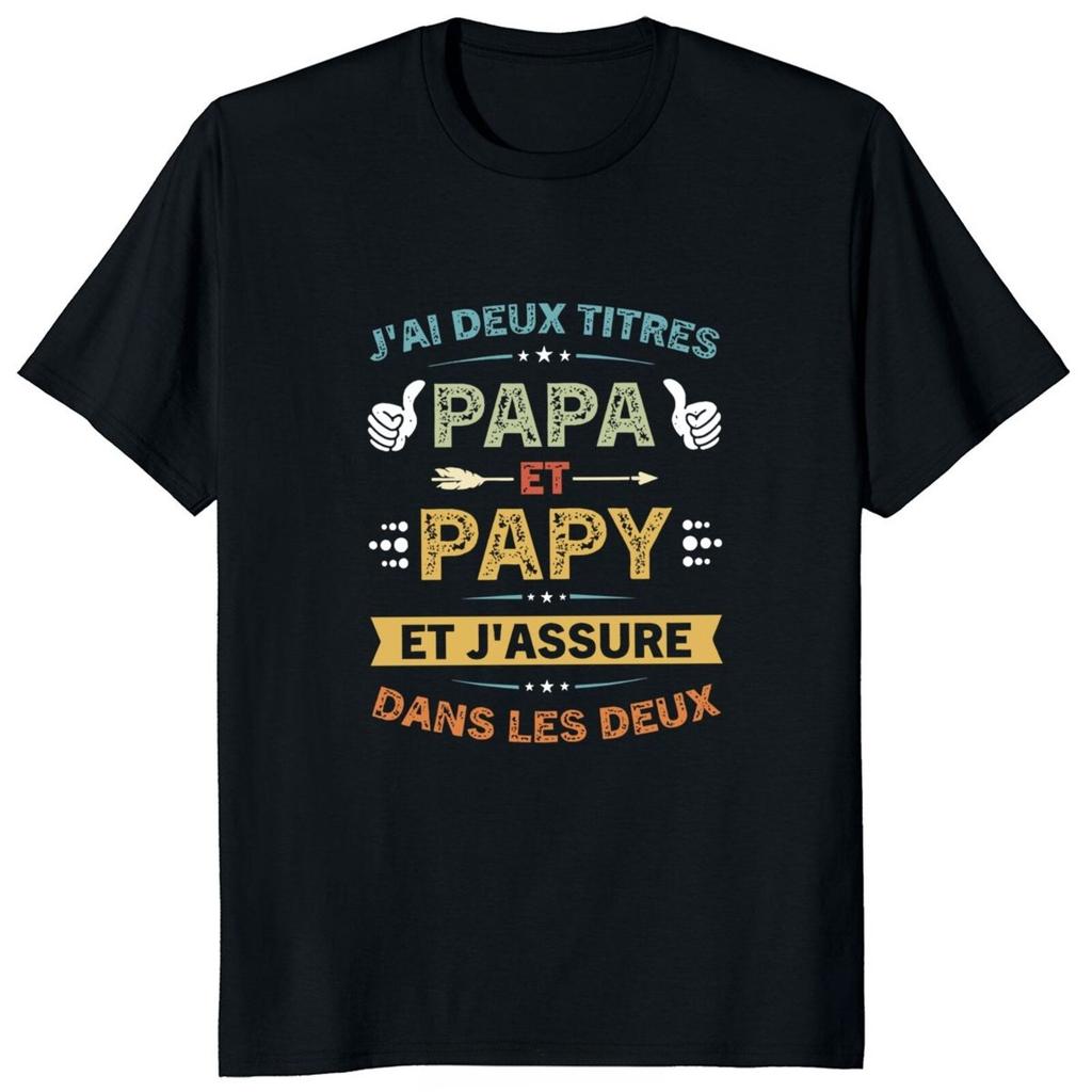 French Texts Papa and Papy Gift Men Tshirt Retro I Have Two Titles Dad and Grandpa T Shirt Casual Fitness Tees Cotton Tshirt