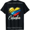 Funny Colombia Flag Heart Colombian Pride T Shirts Men Pure Cotton Humor Streetwear Tee Shirt Short Sleeve Unisex Loose Clothing