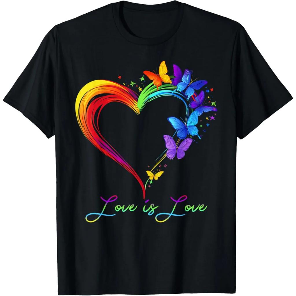 Rainbow Love Is Love LGBT Gay Lesbian Pride Butterfly Heart T Shirts Men Streetwear Tee Shirt Short Sleeve Unisex Loose Clothing