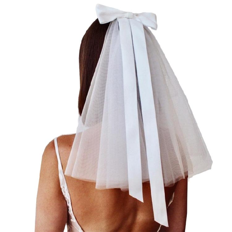 60cm Marriage Bridal Layered Veil Girls Tulle with Ribbon Bowknot Wedding Tiaras