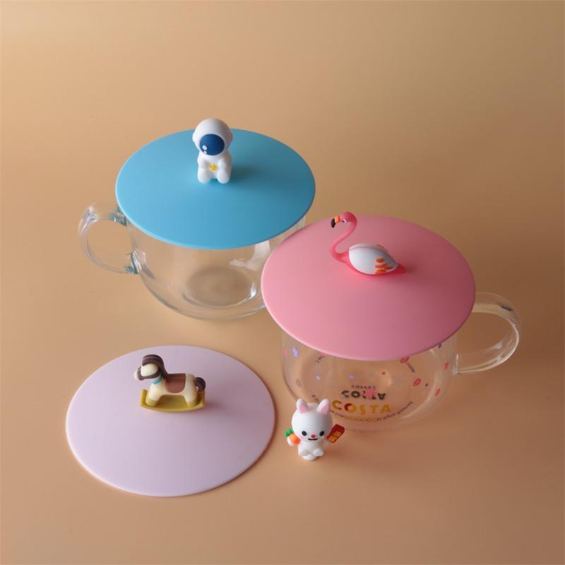Tasse Silikon-Becherdeckel Universeller Frühstücksbecherdeckel Lebensmittelgeeigneter Deckel Niedliches Cartoon-Design