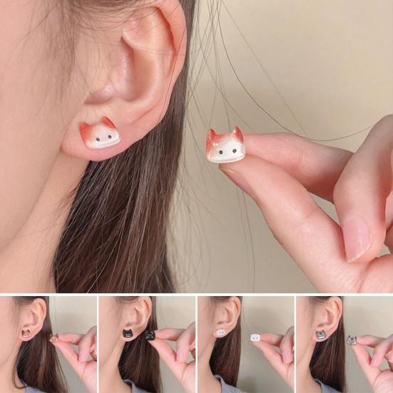 1 Paar Damen Ohrstecker Imitation Kristall Farbverlauf Cartoon Katze Design Ohrstecker Schmuck Geschenk
