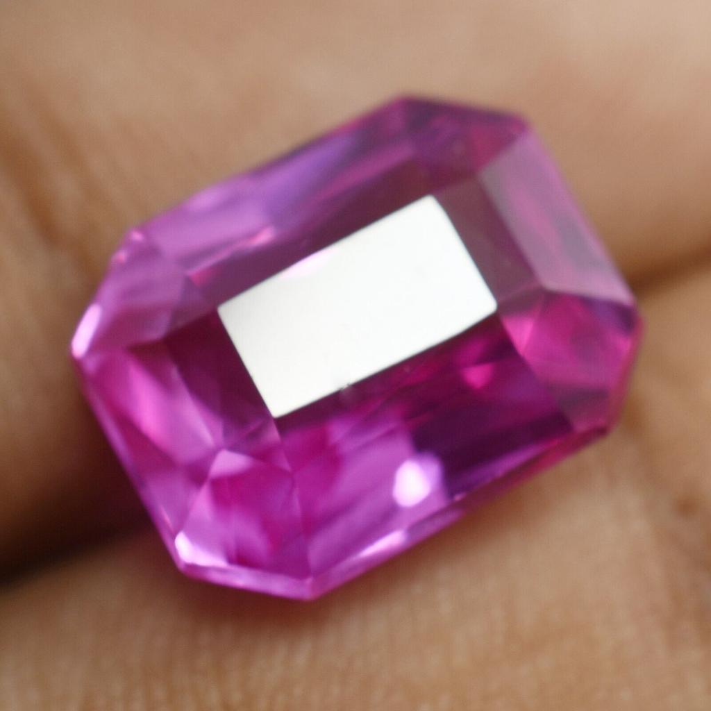 Beautiful Certified 10.25 Ct, NATURAL PINK Sapphire Emerald Cut Loose Gemstone