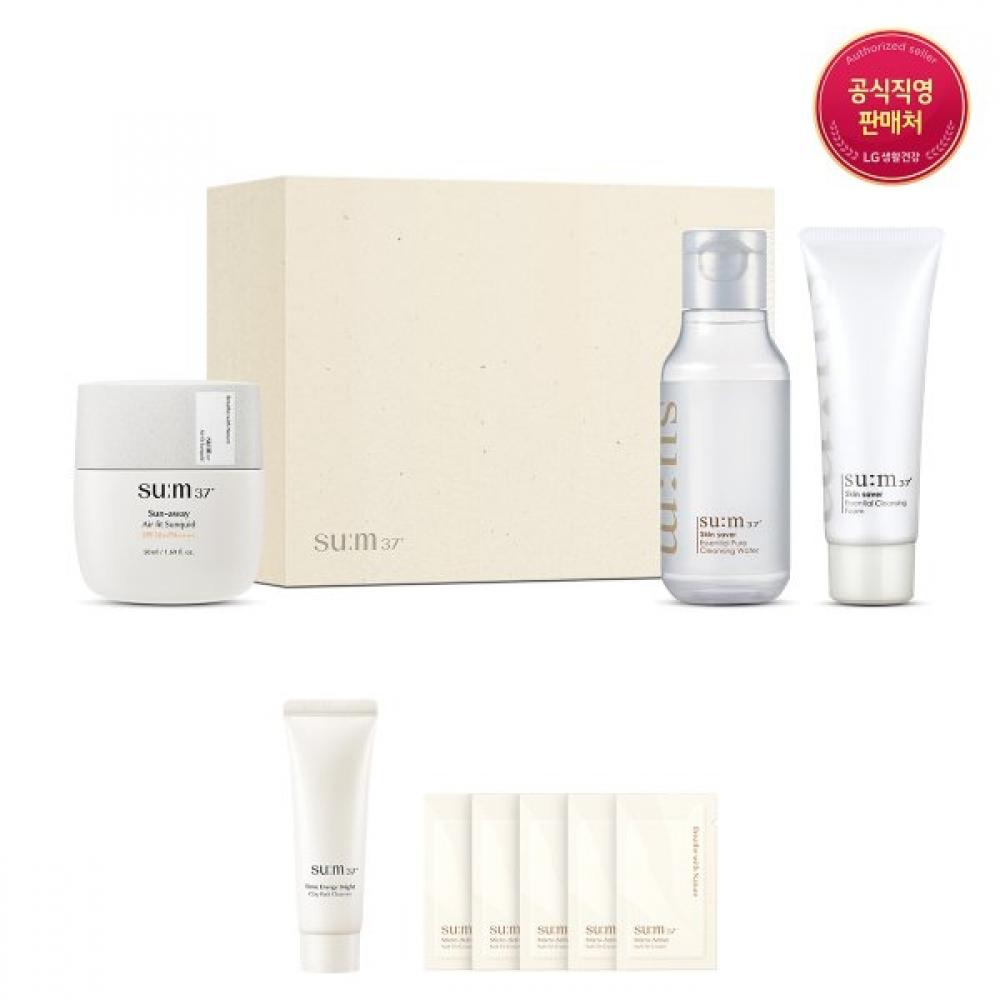 Main product: Sunaway Air Fit Sun Liquid 50ml, Bonus: Skin Saver Essential Cleansing Foam 40ml, Skin Saver Essential Cleansing Water 100ml