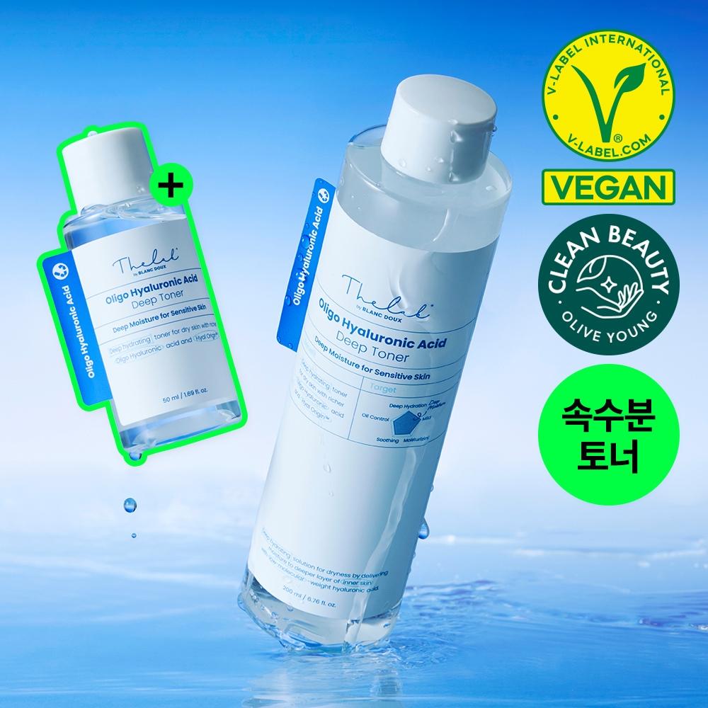 The Lab by Bloundu Low-Molecular Hyaluronic Acid Deep Toner 200ml + 50ml Set is an innovative skin toner designed for deep hydration, targeting 20 layers of dead skin. It utilizes low molecular hyaluronic acid to quickly absorb into the skin, providing a cumulative moisture effect. Especially, the Hyal Origin ingredient enhances absorption power by 150.77% and offers deep moisture retention effect of 191%. Having been tested for skin sensitivity with a score of 0.00, this product includes beta-glucan to care for both moisture and soothing needs. The toner is fragrance-free and has a lightweight, watery texture, providing immediate moisture satisfaction upon application. It boasts a cumulative sales record of 2 million bottles, making it a popular choice.