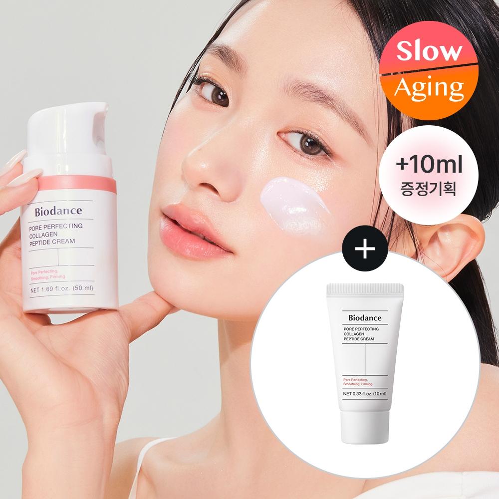 Bio Dance Porenverfeinernde Kollagen-Peptid-Creme 50 ml ist eine High-End-Kollagen-Peptid-Creme, die gleichzeitig Elastizität, Poren und Feuchtigkeit verbessert.. Das Produkt hält die Haut bis zu 200 Stunden lang feucht und geschmeidig.. Optimiert mit 64 % Kollagenwasser und patentiertem Kollagen mit ultra-niedermolekularem Gewicht, dringt es schnell bis zu 10 Hautschichten tief ein.. Die 10 Arten von Peptiden helfen, schlaffe Haut zu straffen, wodurch sie für alle Hauttypen geeignet ist, mit der Zertifizierung der Food and Drug Administration als funktionale Kosmetik.. Die Creme hat eine reichhaltige, pflegende Textur, die gut einzieht und langanhaltende Feuchtigkeit spendet.. Es ist für den Winter geeignet und hat eine leicht klebrige Textur, was eine sichere und problemlose Anwendung ermöglicht.. Es ist als geplantes Produkt erhältlich und enthält 50 ml + 10 ml in der Packung.