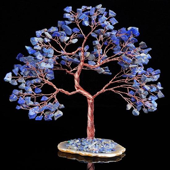 LAPISLAZULI-EDELSTEINBAUM: Dieser Feng Shui Lapislazuli-Edelstein (300 Perlen) Money Tree hat eine Achatscheiben-Geodenbasis (Kupferkabel) und ist etwa 10 Zoll groß. Dieser Glücksbaum ist handgefertigt und bringt Kraft und Klarheit in den Intellekt, fördert die Konzentration und das Gedächtnis, reinigt die emotionalen Aspekte, verbreitet Mitgefühl und ist mit kosmischen Schwingungen verstärkt. Etwas so Einfaches wie ein Edelsteinbaum kann einen Raum schaffen, in dem Positivität frei fließen und gute Dinge anziehen kann.