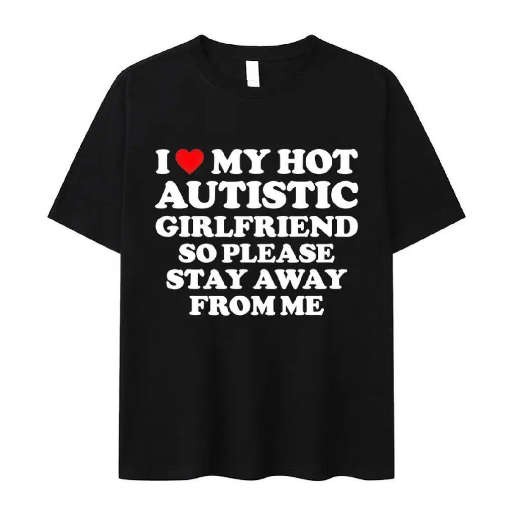 Ich Liebe Meine Heiße Autistische Freundin T-Shirt Herren Hip Hop Lässiges Kurzarm-T-Shirt Freund T-Shirts Herren Baumwolle Sommer Oberteile