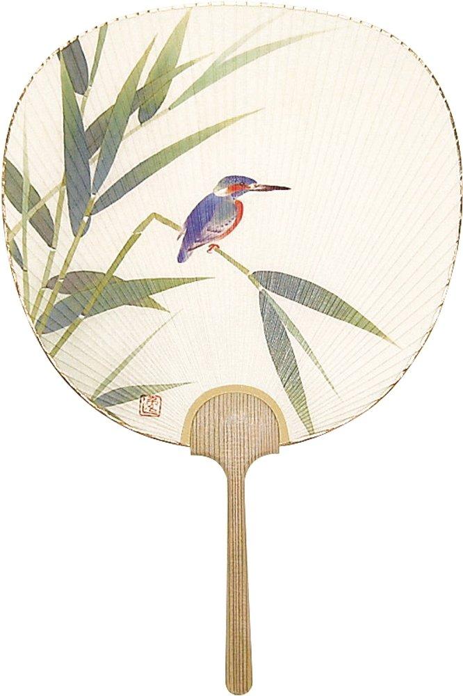 Shiomi Uchiwa Fächer, Blume und Vogel (Eisvogel), 28 x 42 cm, 1365