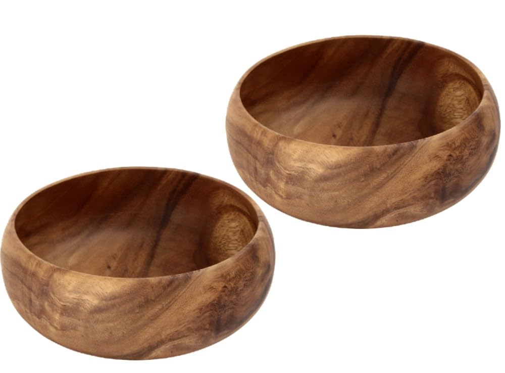 2er Set: Fuji Boeki Runde Akazienholzschalen (XL) x 2, Teller, Speiseteller, Holztabletts, Nordischer Stil