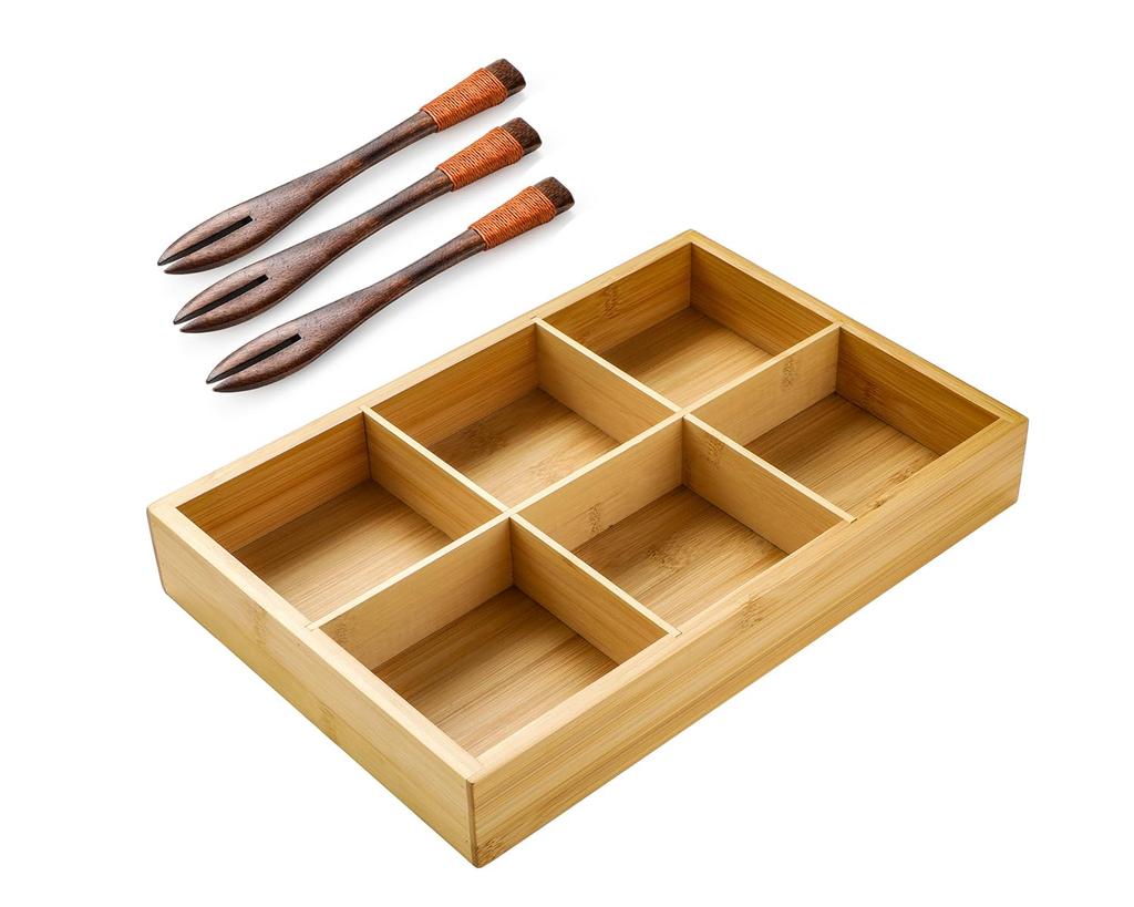 Große Bambus-Servierplatte im Rokugyo-Stil (33x22,5cm), Geteilter Lebensmittelbehälter, Perfekt für Gemüse, Mittagessen und Wurstwaren. Praktisch für Restaurants