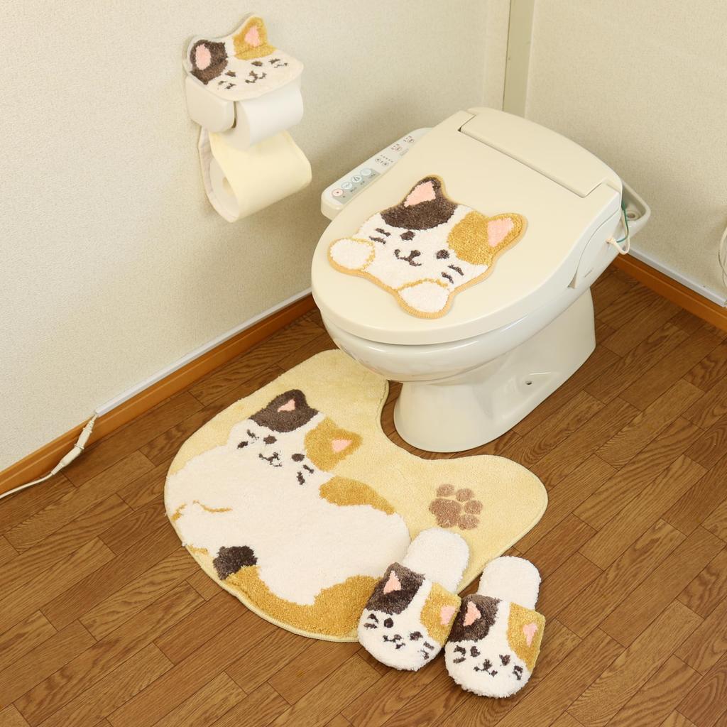 Süßes 4-teiliges Toilettenmatten-Set mit Saugnäpfen, Katzen-Papierrollenhalter-Abdeckung, Hausschuhen und Katzen-Toilettendekoration von Fundit Animals