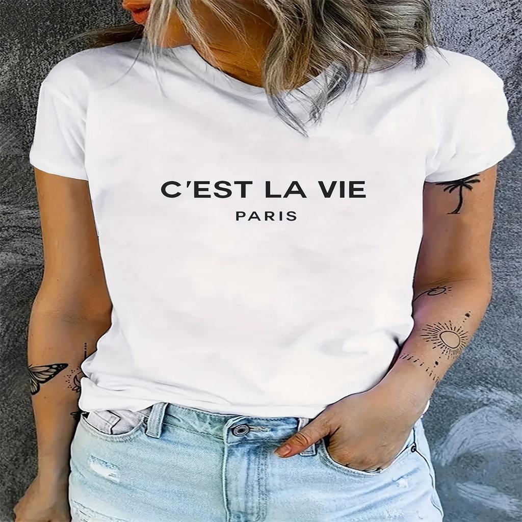 Women's Letter Print Casual T-Shirt for Spring & Summer - Comfortable Short Sleeve Tee with Crew Neck