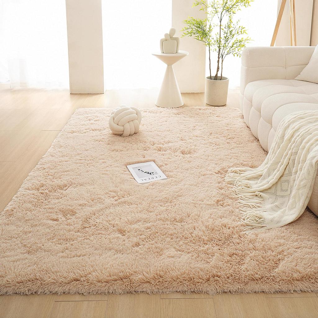 [Super fluffy and warm] This shaggy rug features a 40mm long pile for a soft, smooth feel. It's made of 100% ultra-fine fiber material and tightly sewn, so it won't shed, even with a roller. The long, fluffy pile is soft, but it won't shed, even with a roller, making it incredibly easy to clean. A vacuum cleaner won't tangle the rug and it's easy to clean. It's perfect for air conditioning in the summer and compatible with underfloor heating and heated carpets in the winter.