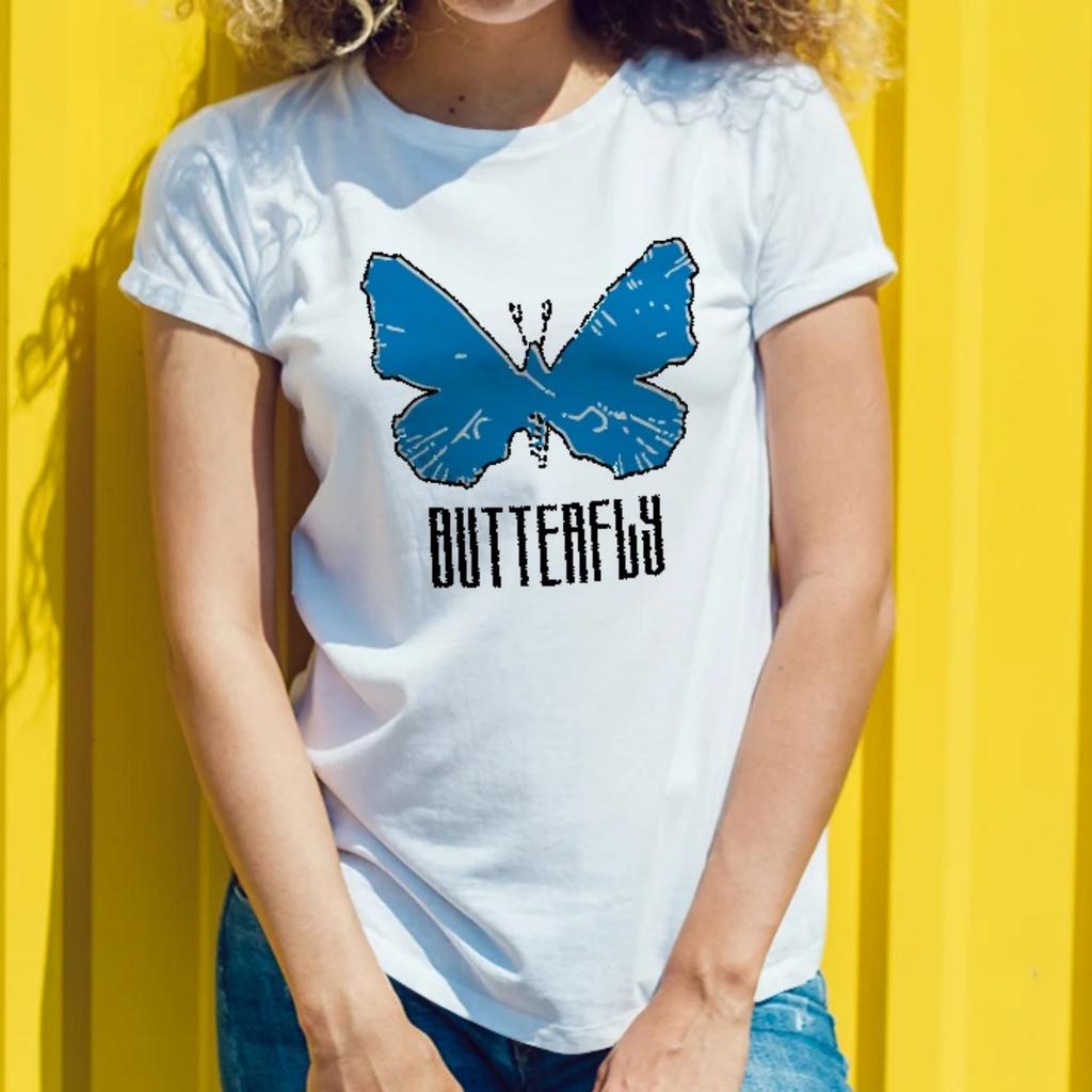 Damen Rundhals T-Shirt mit Schmetterlings- und Buchstabenprint, lässig für Frühling und Sommer, mit voller visueller Wirkung