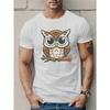 Europäische Größen Herren Freizeit-T-Shirt mit Eulen-Grafik - Kurzarm, Polyester, Rundhals, Maschinenwaschbar, Ganzjahres-Komfort-Top
