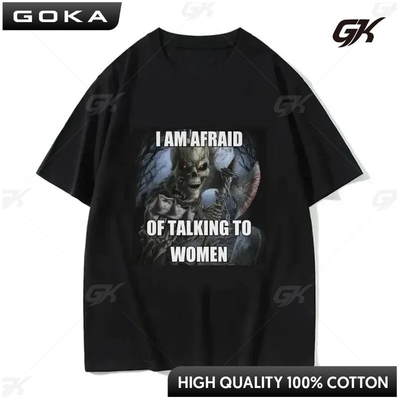 Im Afraid of Talking To Women Tshirt Hard Skull Model Mens and Womens Cotton Graphic Tshirt Oversized Short Sleeved Tshirt
