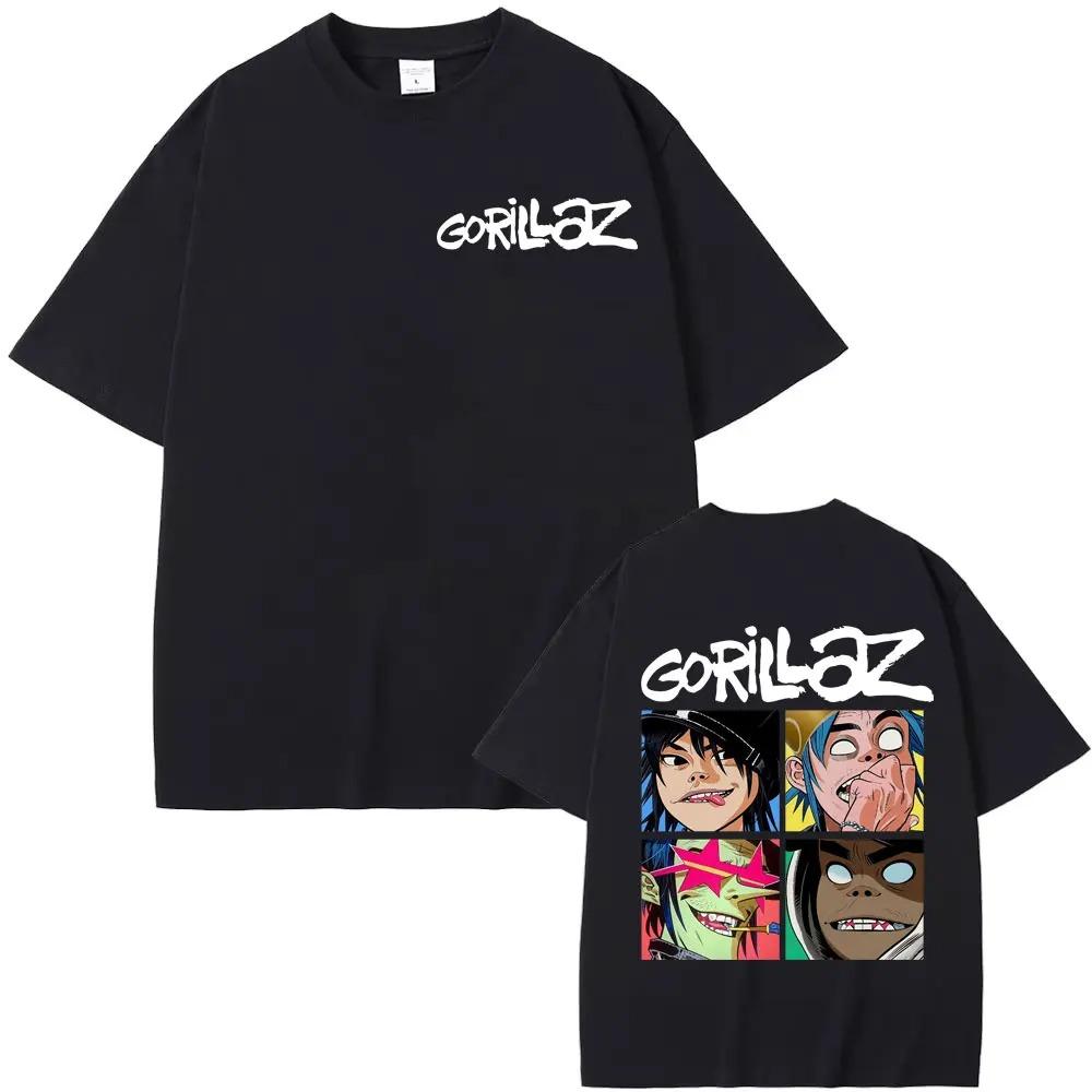 Gorillaz Rockband Vintage Cartoon Grafik T-Shirt Unisex Harajuku Stil Klassisch Übergroß 100% Baumwolle Streetwear T-Shirt