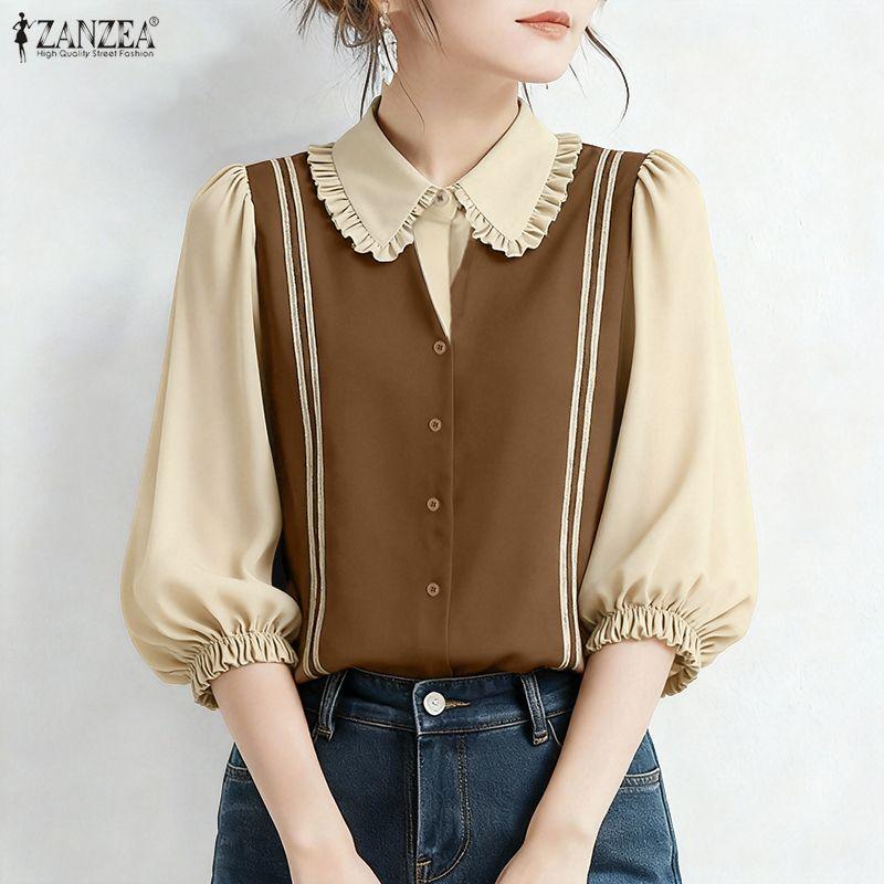 ZANZEA Damen Lässige Puppenkragen Sommer Halbarm Bluse