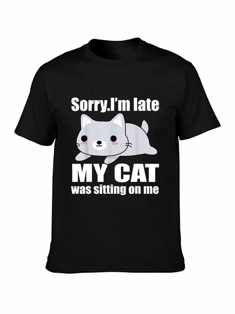 Brand Sorry Im Late My Cat Was Sitting On Me 2019 Summer Men Short Sleeve TShirt