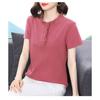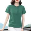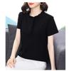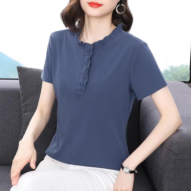 Women's Navy Blue Ruffled Collar Blouse Short Sleeve Button-Down Casual Top
