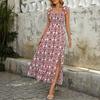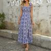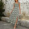 Summer new suspender skirt split ethnic style print dress