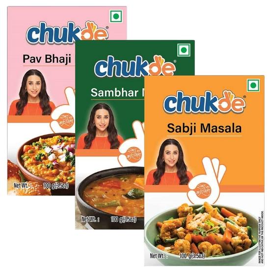 Chukde - Pav Bhaji Masala 100 g, Sambhar Masala 100 g & Sabji Masala 100 g - Gemischte Pulvergewürze für köstliche Mahlzeiten - Kombipackung