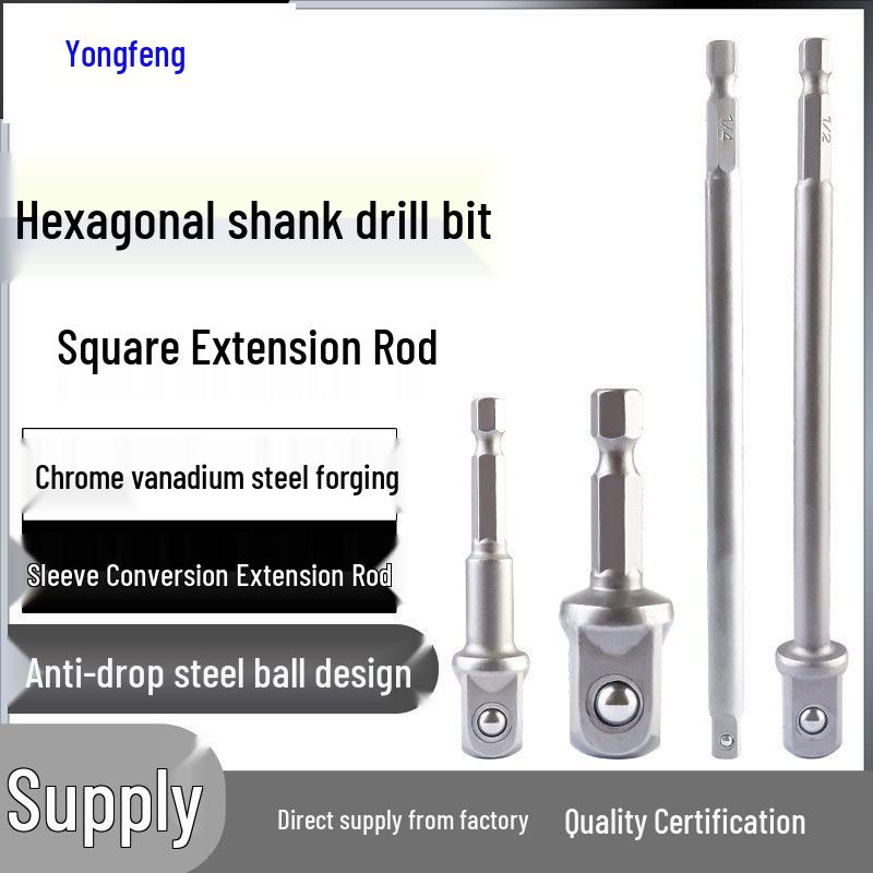 Socket Head Connection Rod: Hex Shank to Square Drive Adapter for Electric Wrench and Hand Drill