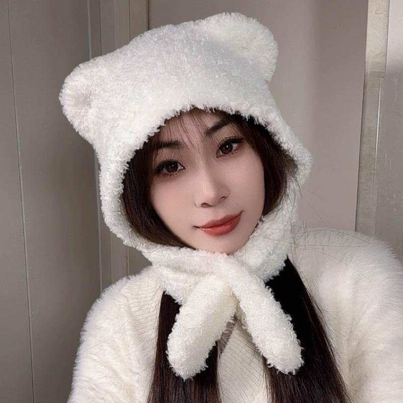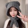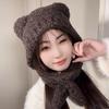 Bärenschal-Mütze Einteilig Zweiteilig Gestrickte Wollmütze für Damen im Herbst und Winter Warmer Gehörschutz Lei Feng Mütze Trend