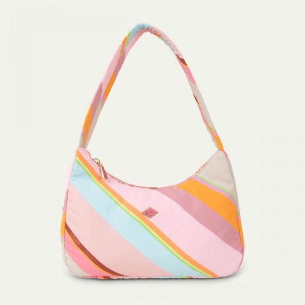 The Oilily Hobo Bag in Misty Rose features a feminine design highlighted by soft curves and flower pattern details, characterized by a multi-colored Misty Rose hue. The main storage space can be securely opened and closed with a zipper, ensuring practicality and style. Additionally, it provides ample storage space with one zipper pocket and two open pockets inside.