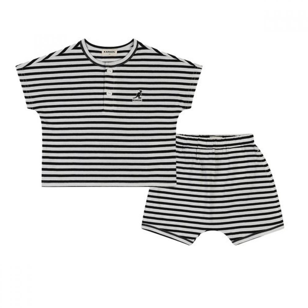 Kangol Kids Stripe Henley Neck Set Wear SB 0A06 Black is designed for infants, featuring a casual style with a coordinated set of top and bottom pieces. The Henley neck design and black color maintain a basic style while highlighting practicality. This item is suitable for daily wear and provides a comfortable fit for infants.