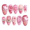30pcs New Sweet Fake Nail Tips French Pink Flower Designs False Nails 3D Flower Almond Nails Women Use