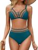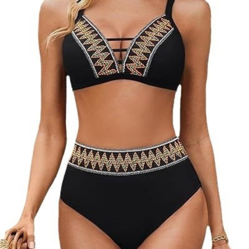 Damen High-Waist Tankini Badeanzug Sexy V-Ausschnitt Bikini Set, Träger Bikini Zweiteiler Push-Up Bademode