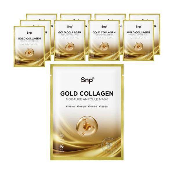 Revitalisieren Sie müde, fahle Haut mit der SNP Gold Collagen Ampoule Mask, einer intensiven Tuchmaske, die darauf ausgelegt ist, straffende, nährende und strahlende Pflege zu spenden.. Angereichert mit Gold und Kollagen, hilft diese Ampullen-Maske, die Hautelastizität zu verbessern, Feuchtigkeit aufzufüllen und einen glatten, gesund aussehenden Teint zu fördern.. Das weiche Tuch schmiegt sich angenehm an die Haut an und ermöglicht eine effektive Aufnahme der Wirkstoffe.. Ideal für die tägliche Feuchtigkeitspflege oder spezielle Hautbehandlungen.