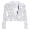 Mädchen Pailletten Strickjacke Oberteil Langarm Doppelreißverschluss Schößchen Design Cropped Jacke Geburtstagsparty Oberbekleidung