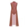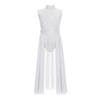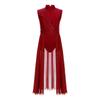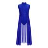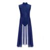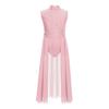 Kinder Mädchen Lyrisches Tanzkleid mit floralem Spitzen-Patchwork: Elegantes Stehkragen- und Cut-out-Rückendesign für Bühnenauftritte