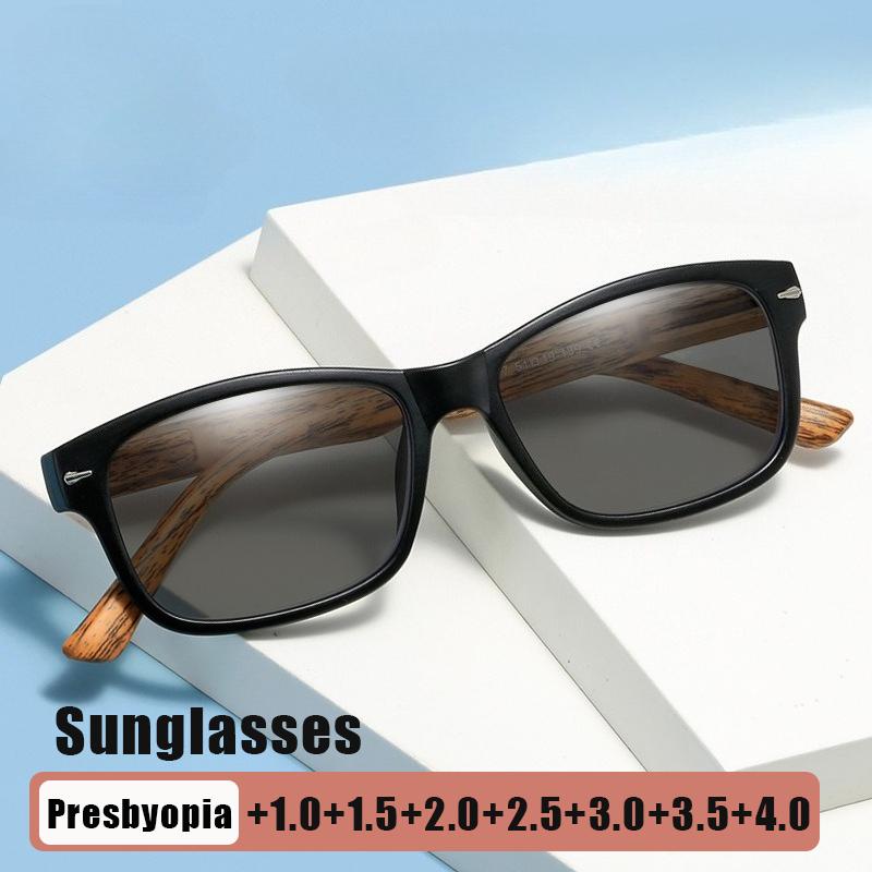 Outdoor UV Protection Presbyopia Sunglasses Fashion Square Frame Wood Grain Temples HD Shades Eyewear Classic Driving Shades