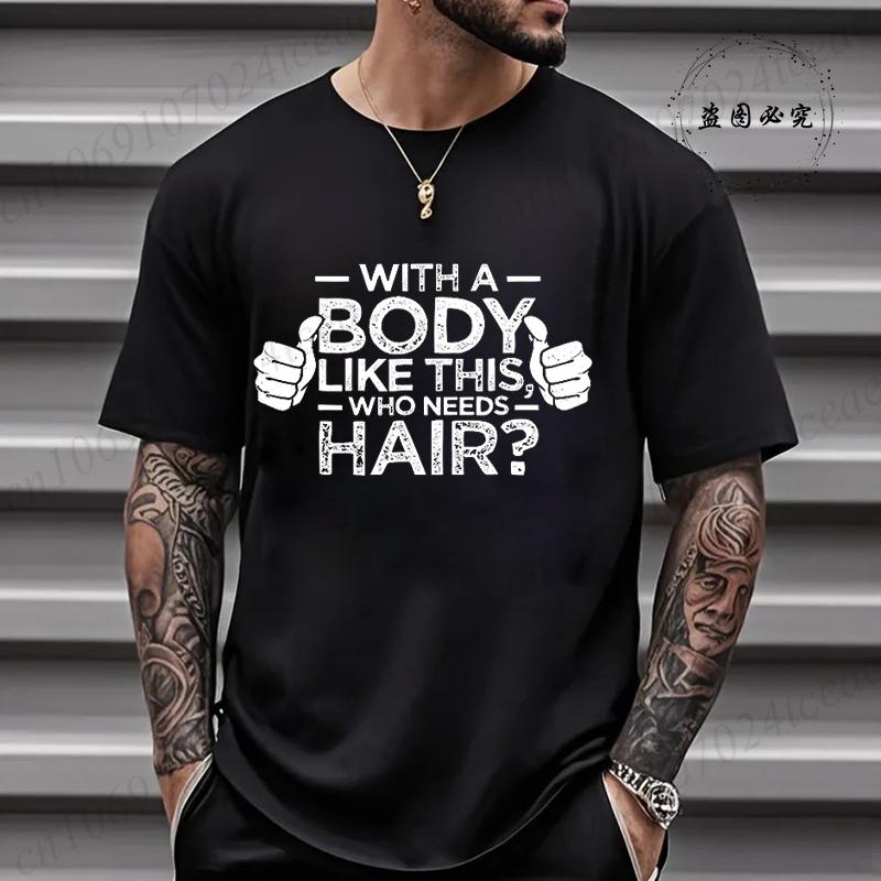 With A Body Like This Who Needs Hair Shirt Leisure Summer T Shirts for Men Tops T Shirt New Fashion Tee Tshirts Funny Bald Gift