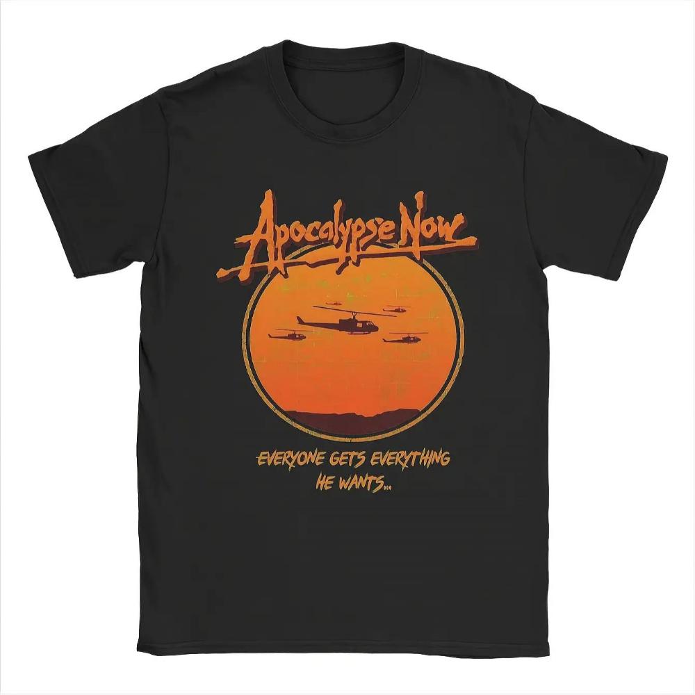 Herren Apocalypse Now Film T-Shirt Vintage 70er Jahre Film Grafik T-Shirt mit Helikopter Sonnenuntergang Schwarz Rundhals Shirt