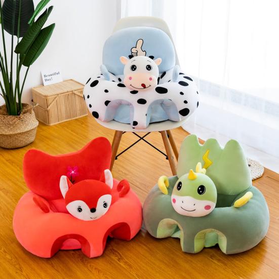 Baby-Sofastuhl mit Cartoon-Tieren, Babysitz mit Beinlöchern, Griffen, rutschfester Unterseite, Sofastuhl mit Rückenstütze für aufrecht sitzende Kleinkinder