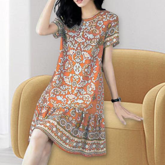 Erhöhen Sie Ihren Stil mit diesem Polyesterkleid mit lässiger und lockerer Passform. Der weiche, leichte Stoff sorgt für ganztägigen Komfort. Dieses mittellange Kleid verfügt über eine hohe Taille und ein Retro-Ethno-Blumenmuster und verleiht Ihrem Look einen Hauch von Eleganz. Das lange Kleid mit fließendem Saum unterstreicht Ihre Einzigartigkeit und Anmut.