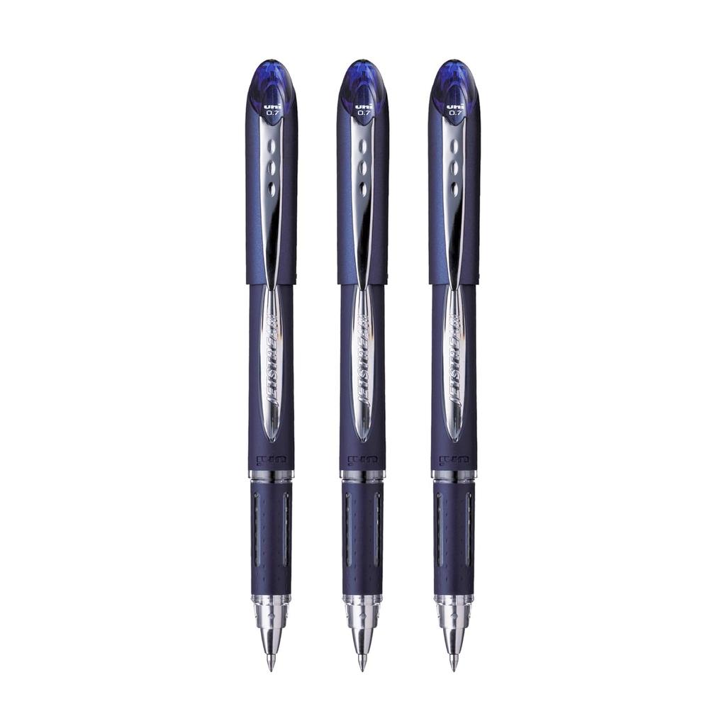 The UNI-BALL Jetstream SX217 1.0mm roller ball pen delivers smooth, quick-drying blue ink for effortless writing. Its comfortable rubber grip makes long writing sessions easy and precise. Perfect for school, office, home, journaling, note-taking, and sketching. Retractable and portable, this pack of three pens ensures you always have a reliable pen at hand.