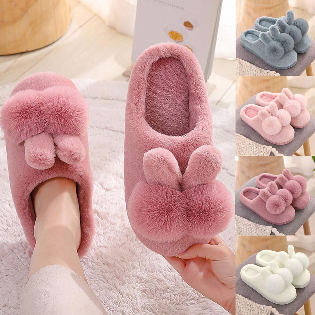 Womens Size 8 Slippers Couples Women Slip Furry Plush Flat Home Winter Round Toe Keep Warm Cartoon Chaussures Femmes éLéGantes