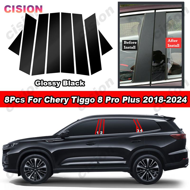 Glossy Piano Black Car Door Window Center Middle Column B C Pillar Post Cover Trim Sticker For Chery Tiggo 8 Pro Plus 2018-2024